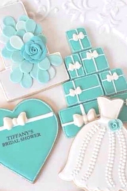 I warn you, these might be too pretty to eat! Custom sugar cookies are an absolute must for a Bride & Co shower. Find a local baker (or try your hand at decorating them yourself) to create cookies shaped like little blue boxes, elegant wedding dresses, and classic tiered wedding cakes. They look stunning arranged on an ornate serving platter and double as wonderful conversation starters.
