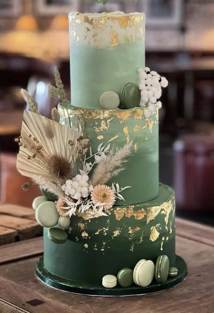 Clothing: Your bridesmaids will look stunning in emerald dresses, while groomsmen can wear black suits with emerald ties, ensuring a polished and refined appearance.
