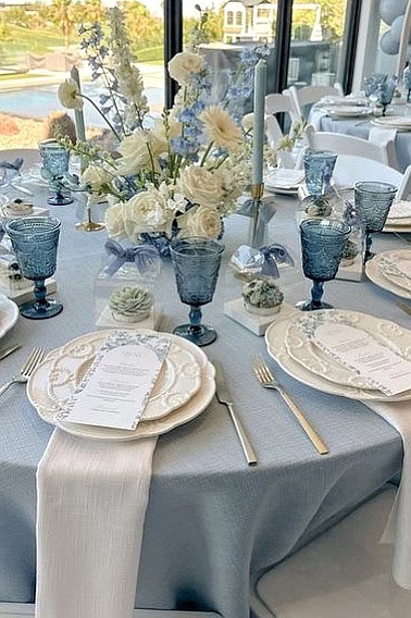 You get to play with gorgeous shades of sapphire, dusty blue, and navy, creating a serene and memorable atmosphere that guests will love. I thought it would be fitting to share my absolute favorite ways to bring this theme to life.