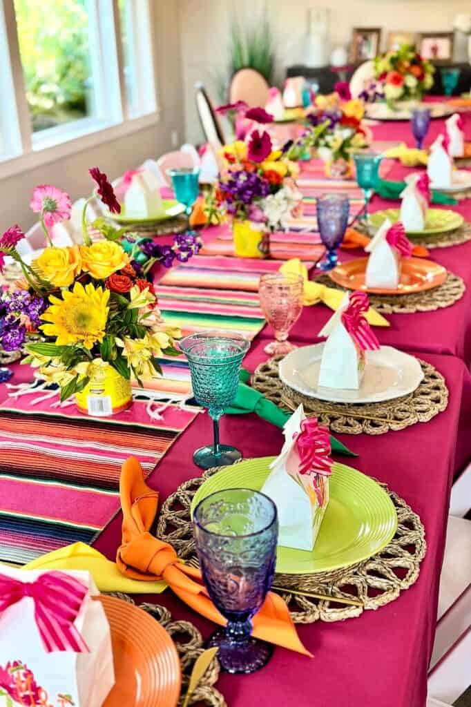 Traditional woven serape runners bring an authentic, festive texture to your dining setup. Simply drape them across your main food table or guest seating areas. They are a brilliant way to add a pop of color without needing expensive linens.